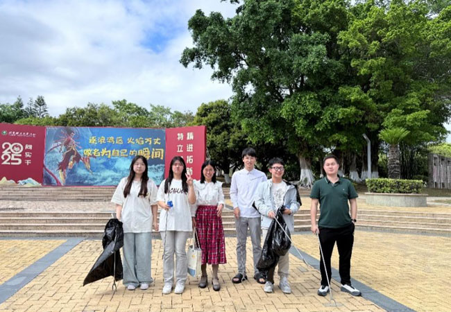 为深化学生环保意识与岭南文化认知,同步提升双语实践能力,中心于3月12日组织学生在珠海校区荔枝岛开展环保清岛行动,并创新开设沉浸式荔枝文化双语课堂。